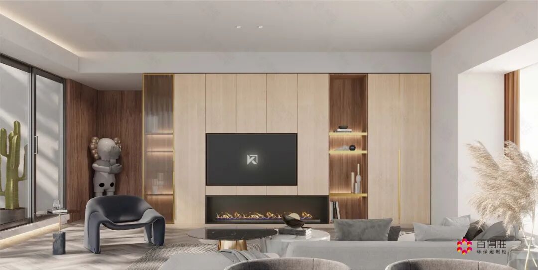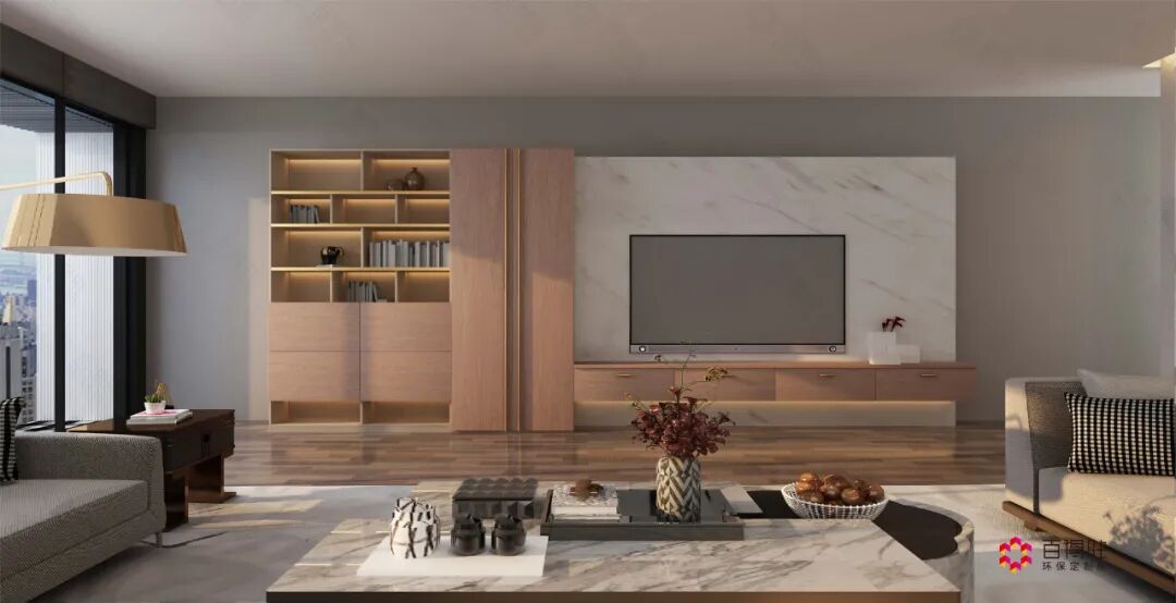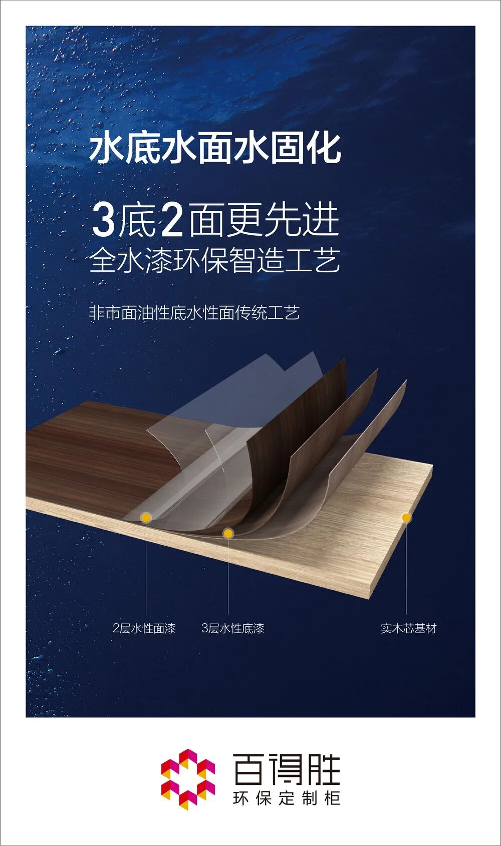 百得胜匠心研木,行业原创水漆实木定制柜。经严格的优中选优,甄选天然木材及木皮,以水为源,溶之于漆,水木交融,还原木之本色。用以独特的径切工艺,让木材最好、最美、最优的一面呈现出来,再结合创新研发的3底2面全水漆工艺,使水漆实木家具天然的肤感、天然的纹理、赏心悦目,更有益人体健康。