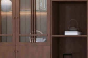 设计,采用自然雅致的胡桃木色,纹理,莲花/莲叶拉手与琴门,笔墨纸砚,园林绿植,营造出远离尘嚣的宁静之美,独特搭配出主人清雅的品位。