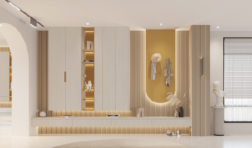 精心打造现代工业轻奢风,复古与时尚在细节处相融,布纹和木纹组合触感别致,镶嵌式拉手还原生活本真